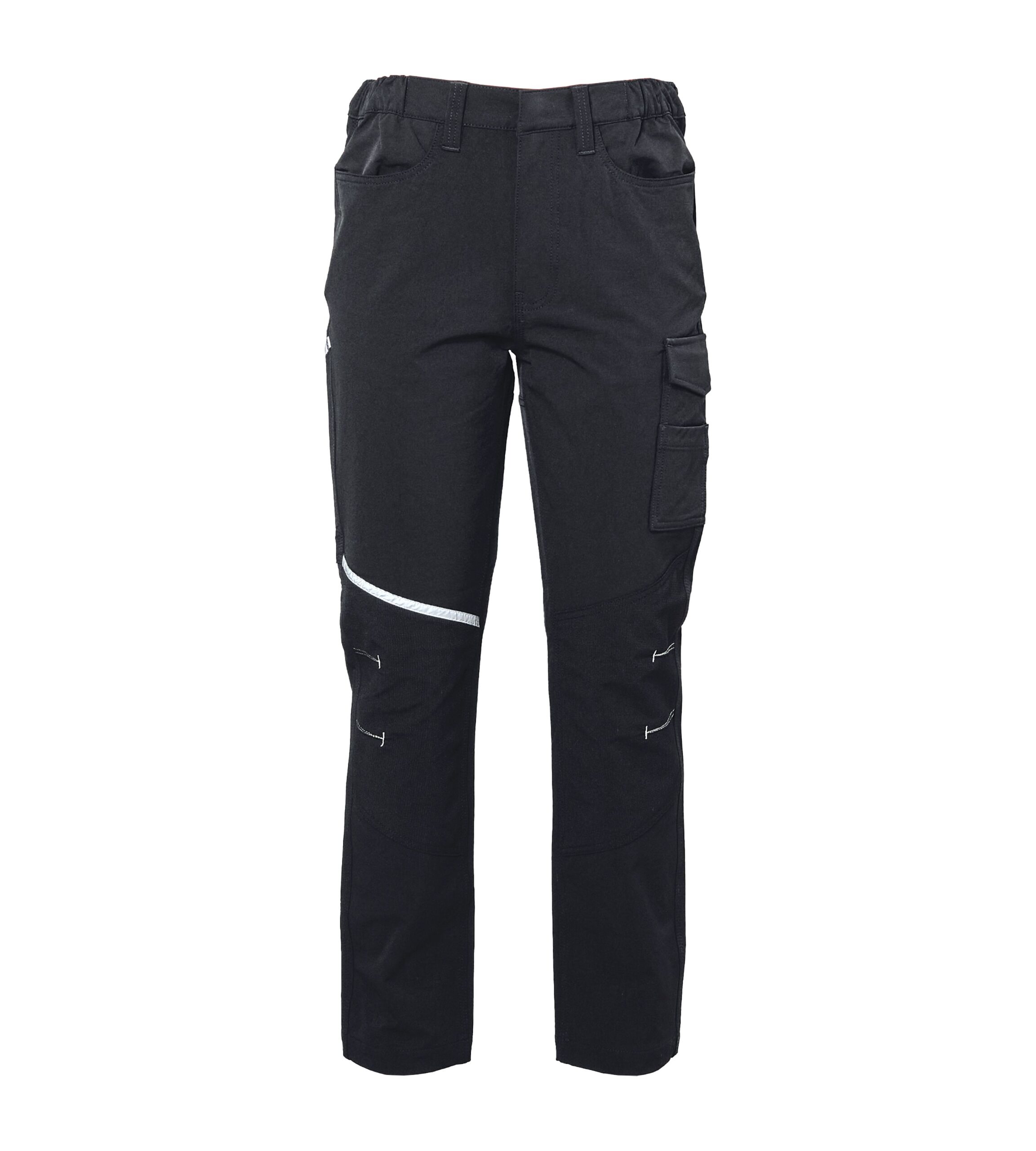 – Tessuto antiabrasione elasticizzato 92% polyestere 8% elastane sulle ginocchia con impunture rifrangenti