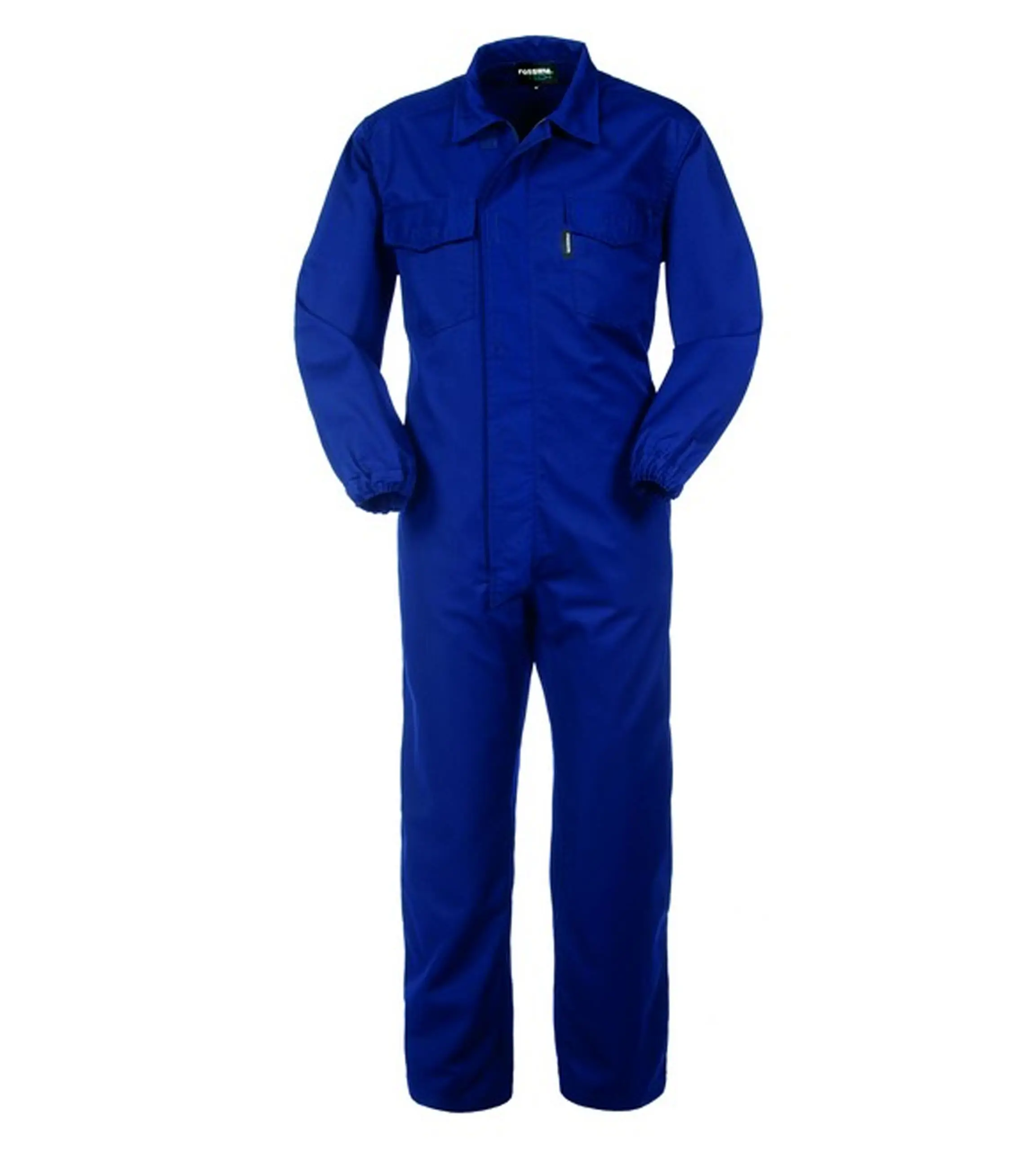 Tuta da lavoro con chiusura centrale con zip a doppio cursore coperta da patella con punti velcro.